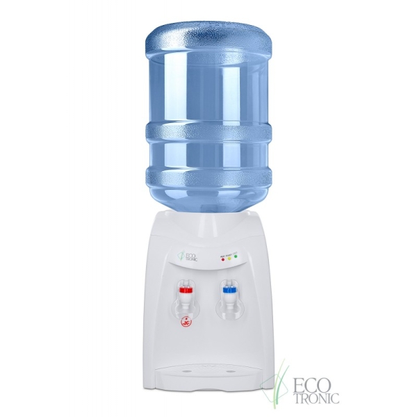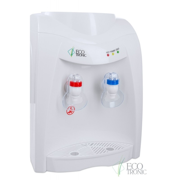 Кулер настольный с электронной системой охлаждения и нагрева. Цвет белый. Краны нажим рукой. Краны удобны при использовании в офисе и дома.